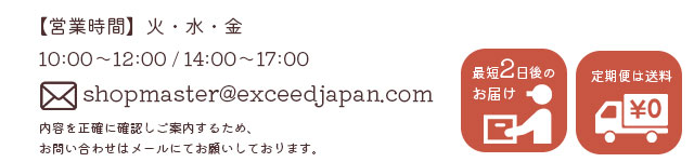 ※お電話のお問い合わせは火・水・金曜日10時~12時/14時~17時のご対応となります。つながらない場合はお手数をおかけしますがメールにてお問い合わせお願い致します。